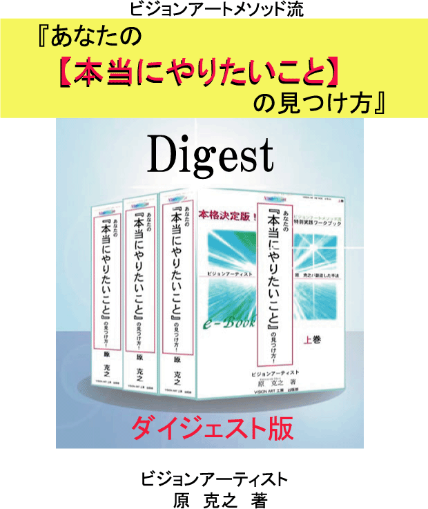 自分探しの究極本!これで、あなたの【本当にやりたいこと】が明確になる!とうとう下巻、全3巻完結!心の底から【本当にやりたいこと】を見つけ本気で、そのビジョンの実現を願う、すべての人に本書を捧げます。ついに8年間、200名が【本当にやりたいこと】を見つけ、本気でビジョン実現をサポートする『ビジョンアートメソッド』のエッセンスが明らかになりました。本気で、あなたの【本当にやりたいこと】を見つけたい方のための実践ワークブック!『本格決定版あなたの【本当にやりたいこと】の見つけ方』待望のダイジェスト版!